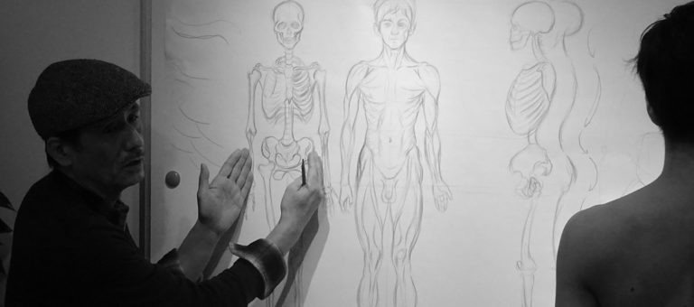 人体(男性)の構造を理解し、生きた線の習得を目指します。年間を通して、人体の構造を理解し、それを表現豊かな線画で描く力を養います。当塾の授業は、男性モデルや写真(動画含む)などを使い、人体(全身または身体の部位)の形やバランスを正確に捉えることを重点的に学び、デッサンの基礎力を高めます。基本的には、カリキュラムにしたがい授業を進め、皆さんの習熟度や進捗を把握しながら、より具体的